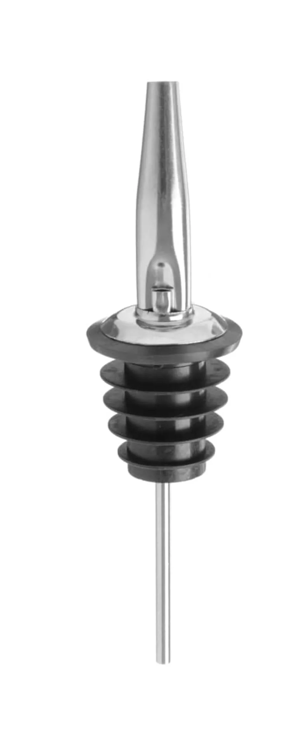 Ausgießer aus Edelstahl für Spirituosen, Säfte und andere Flüssigkeiten. Mit 4 unterschiedlich großen Dichtringen aus Kunststoff, so dass die Ausgießer auf viele Flaschen passen.