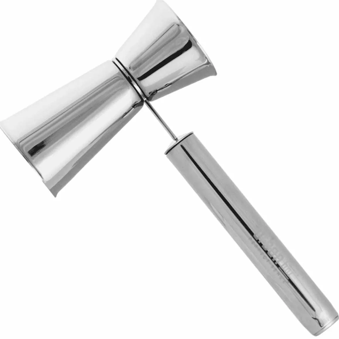Barmaß mit zwei Messbechern und einem in der Mitte angebrachtem Griff. Dies sieht professionell aus und ermöglicht ein leichtes Handling des Messbechers ohne diesen zwischen den Fingern einzuklemmen. Sollte beim Eingießen der Cocktail Zutaten in den Shaker mal etwas am Barmaß herunterlaufen oder aus dem Rührglas spritzen landet die Flüssigkeit nicht auf ihren Händen.