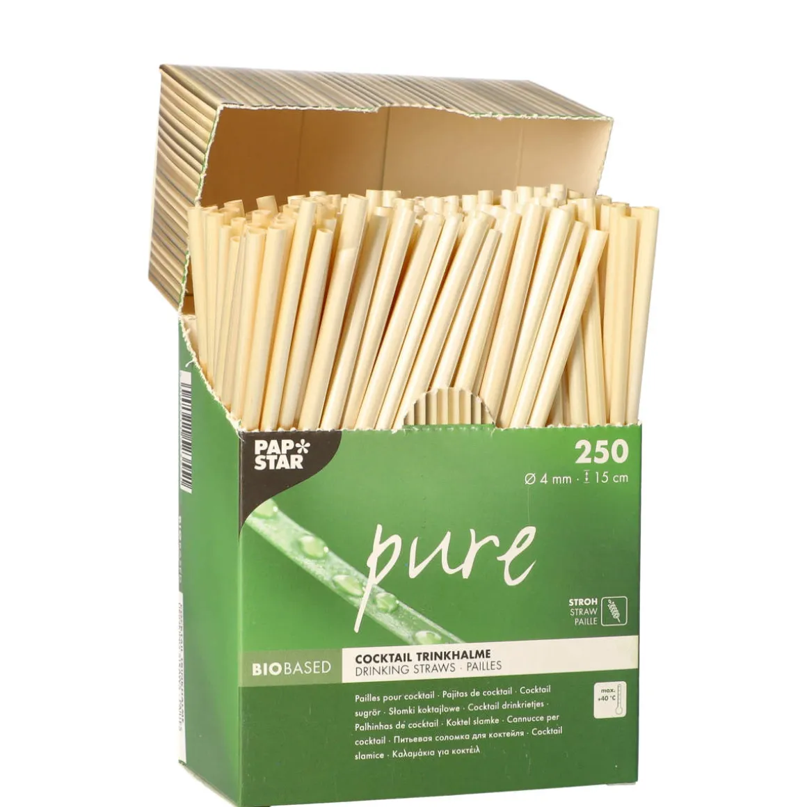 Bio Cocktail-Strohhalm aus Stroh | Ø 4 mm x 15 cm – Papstar Pure (250 Stk)