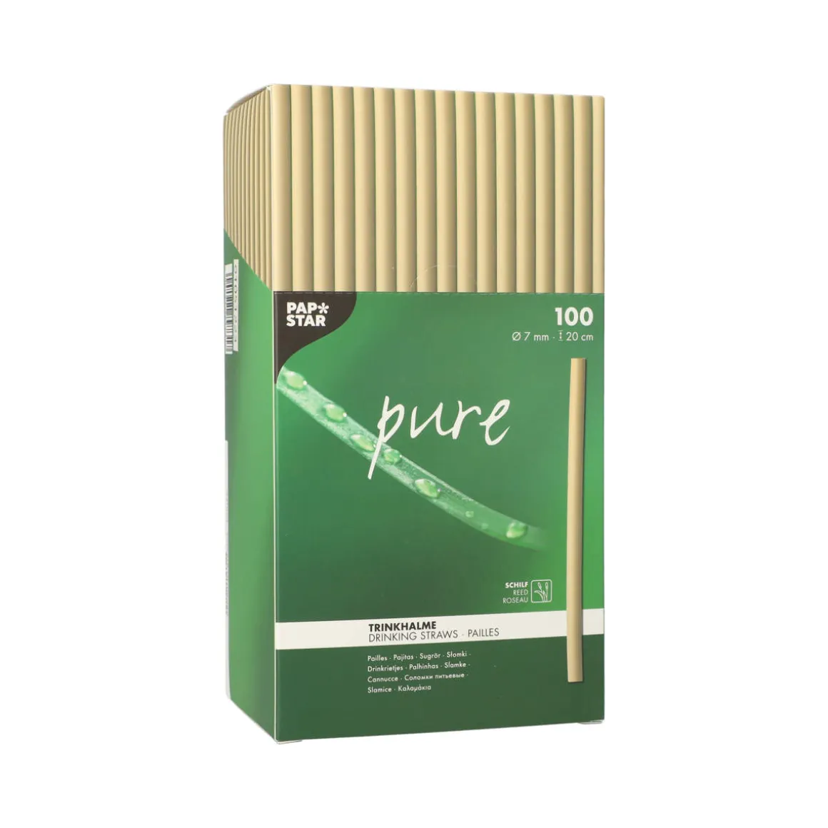 Produktinformationen „Bio-Strohhalm aus Schilf | Ø 7 mm x 20 cm – Papstar Pure (100 Stk)“