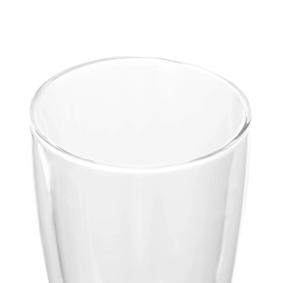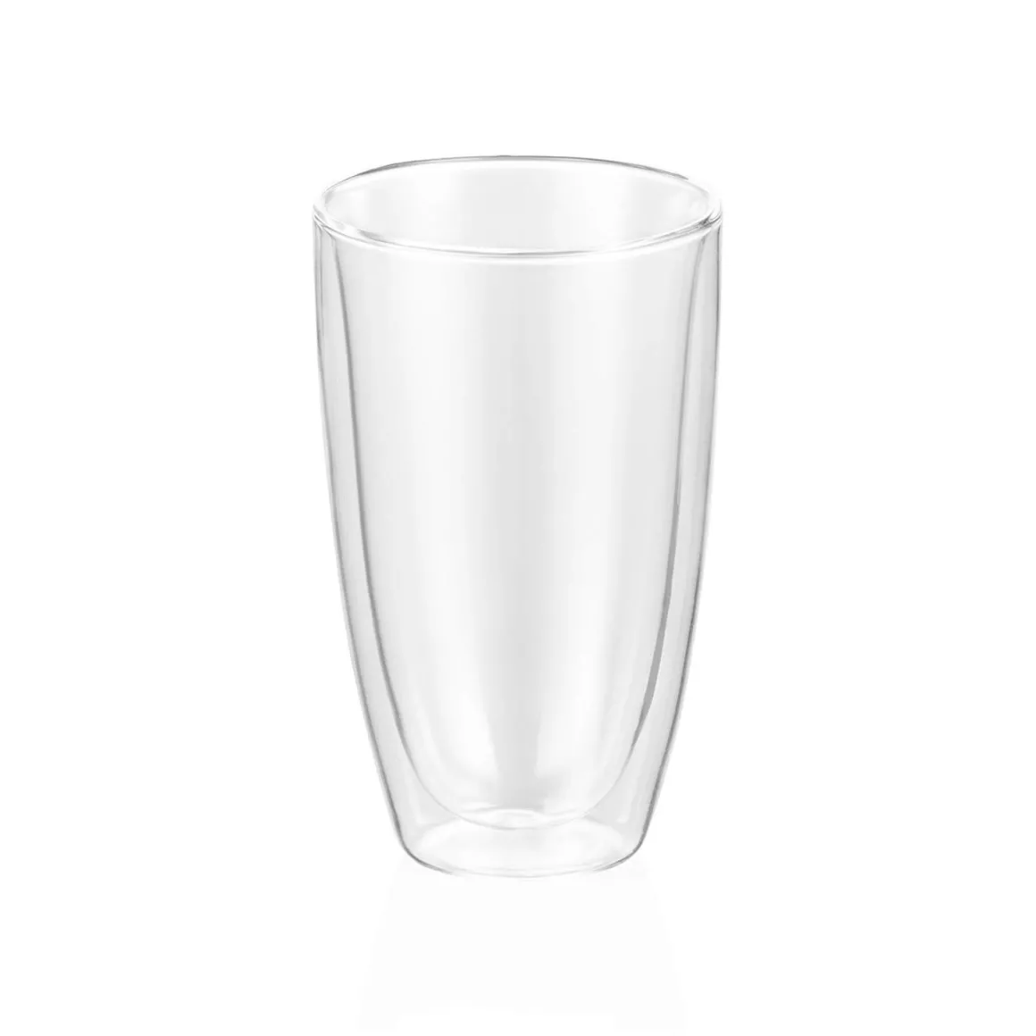 2 doppelwandige Caffè Latte Gläser Lounge aus Borosilikatglas. Die Gläser sind spülmaschinentauglich und haben ein Volumen von 360 ml. Sie haben eine Höhe von 13,5 cm und einen Durchmesser von 8,5 cm.