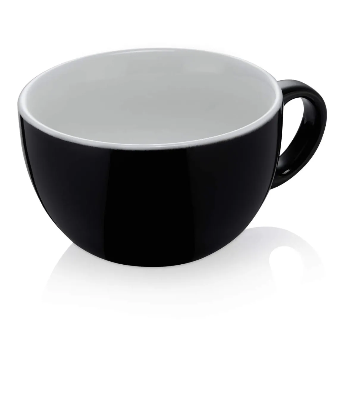 Die Caffé Latte Tasse Italia Black zeichnet sich durch Ihren Kontrast zwischen schwarzer Außenseite und weißer Innenseite aus. Das Weiß der Innenseite geht bis auf die Oberkante der Tasse um Ihr so einen klaren Abschluss zu geben.