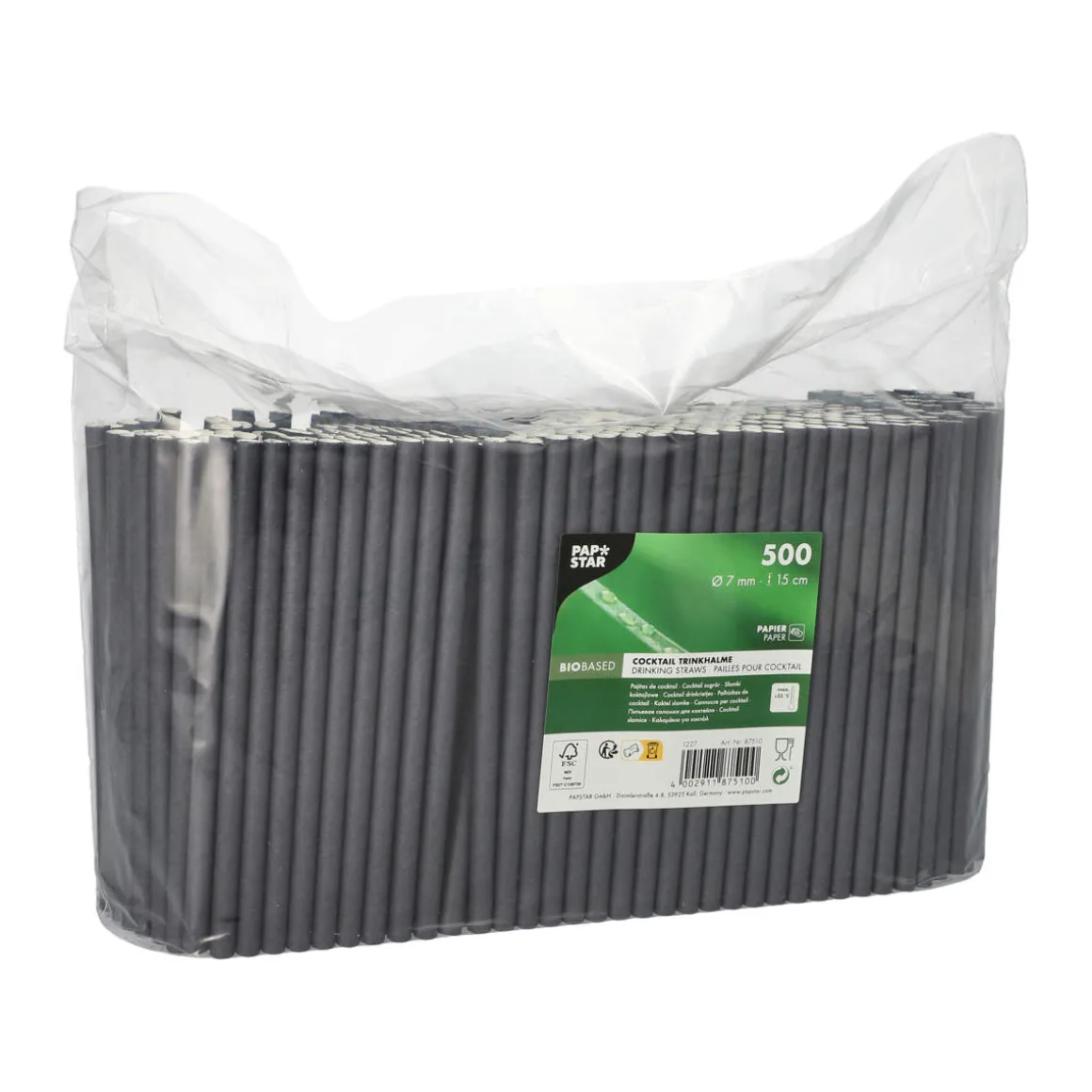 Produktinformationen „Cocktail Papierstrohhalm | Schwarz – Ø 7 mm x 15 cm – Papstar Pure (500 Stk)“