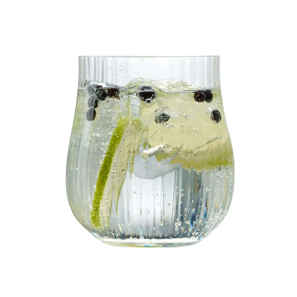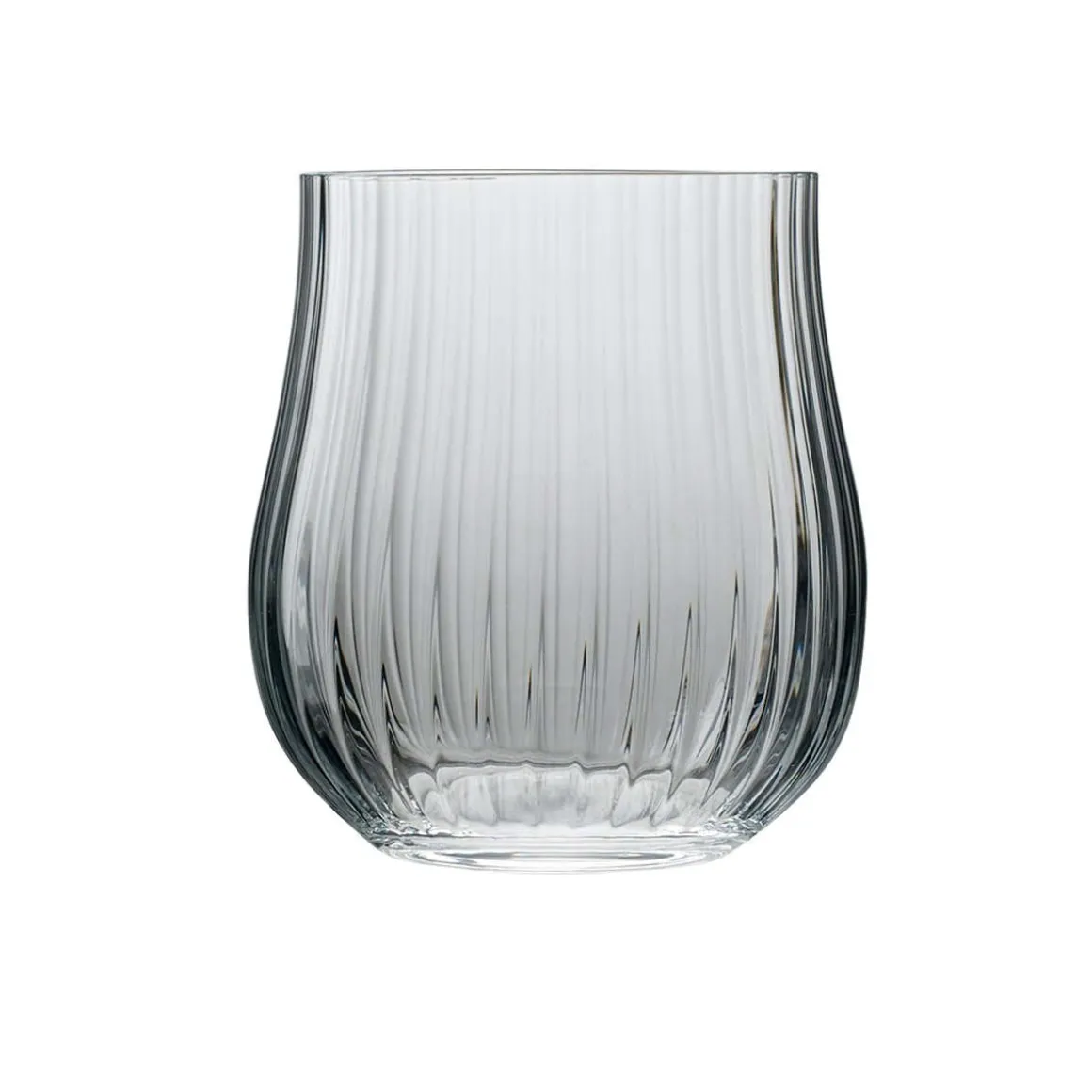 Hochwertiges Double Old Fashioned Glas mit elegant geschwungener Tulpenform. Das Glas wurde zusätzlich mit einem senkrechten Rillenmuster verziert. Der Vintage Look der Gradara Gläser ist wieder hochmodern und besonders zum Servieren von Longdrinks wie Gin & Tonic beliebt.