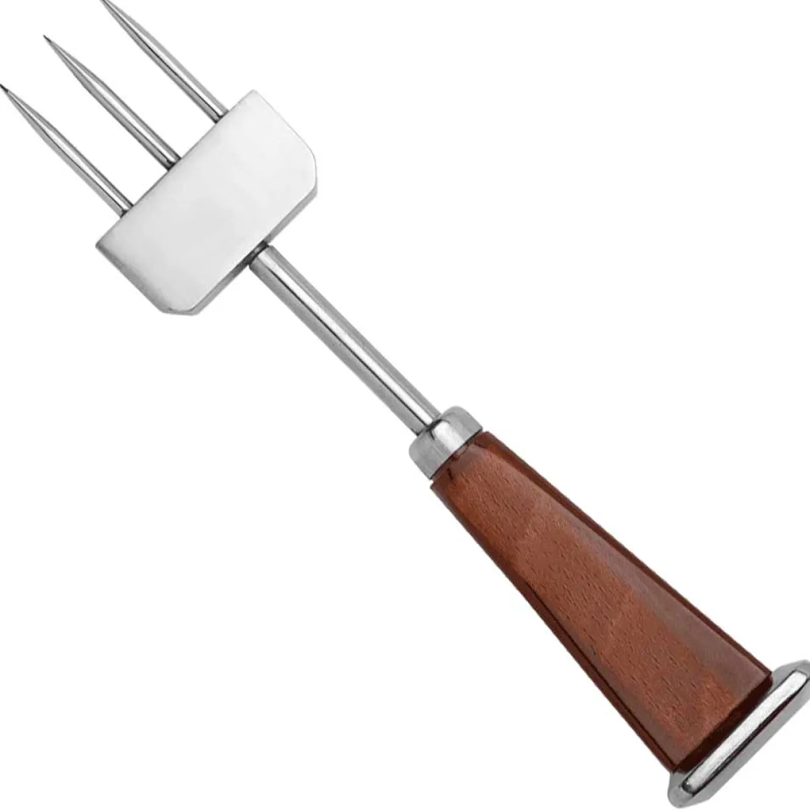Hochwertiger Eispickel aus Edelstahl mit japanischem Design in schwerer Ausführung. Die drei Dornen haben eine Länge von jeweils 4 cm. Der Griff besteht aus Buchenholz und wurde in Mahagoni gefärbt.