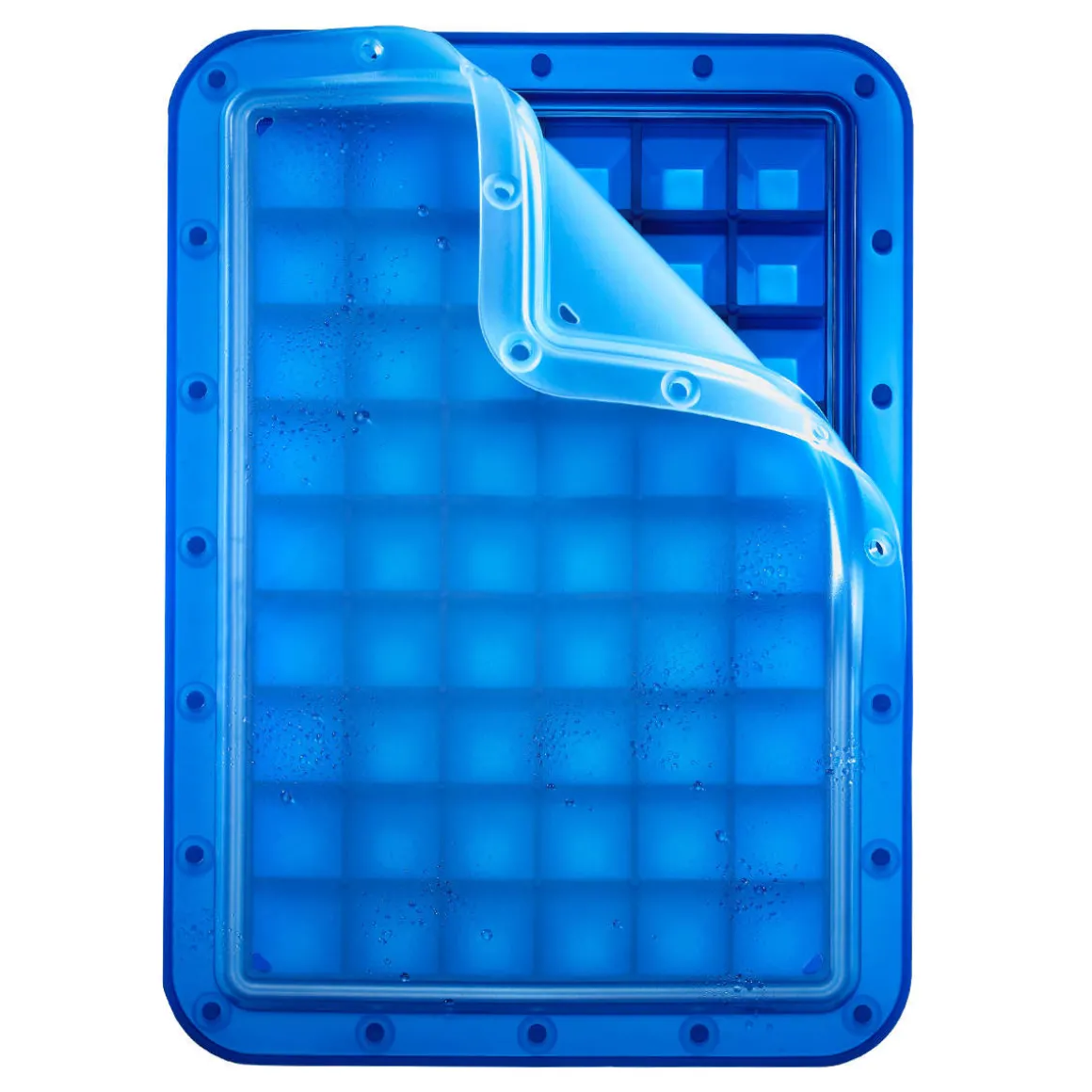 Große Eiswürfelform Arctic mit verschließbarem Deckel. Eiswürfelform aus Premium-Platin-Silikon für 54 x 2 cm Eiswürfel.
