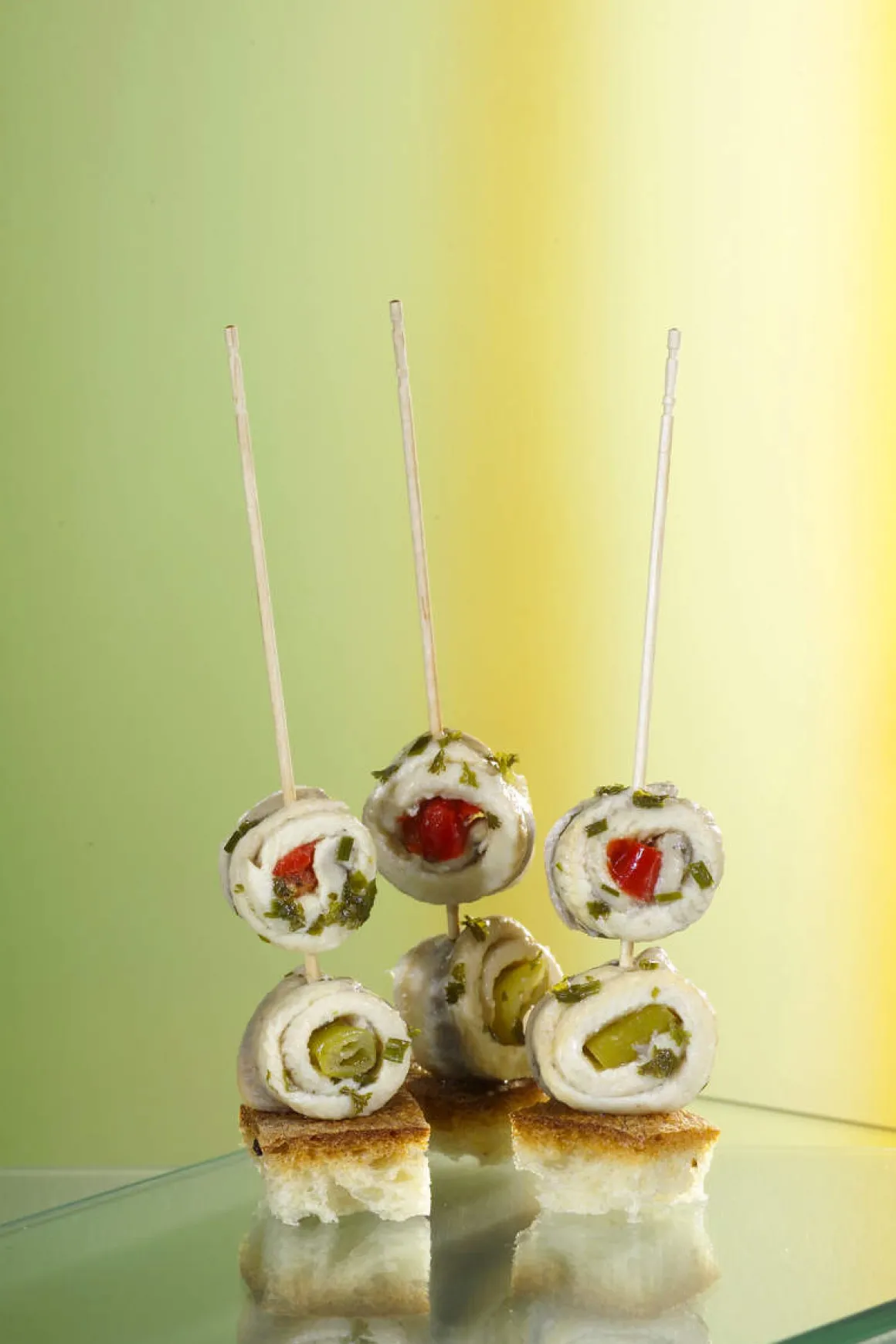 Fingerfood Spieße aus Holz mit einer Länge von 15 cm.