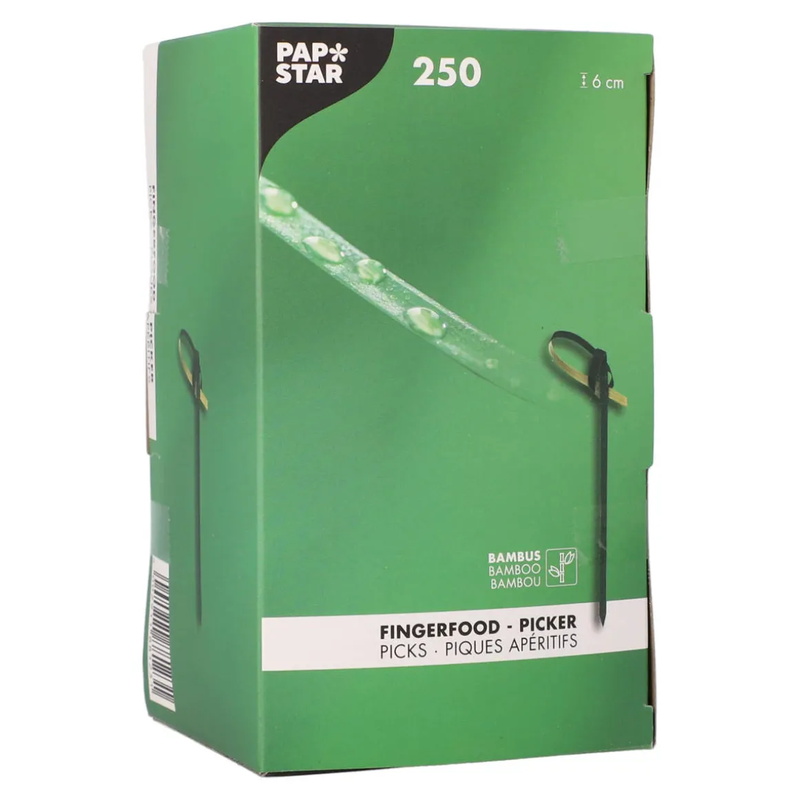Fingerfood-Spieße „Knoten“ | Schwarz – 6 cm – Papstar Pure (6 x 250 Stk)
