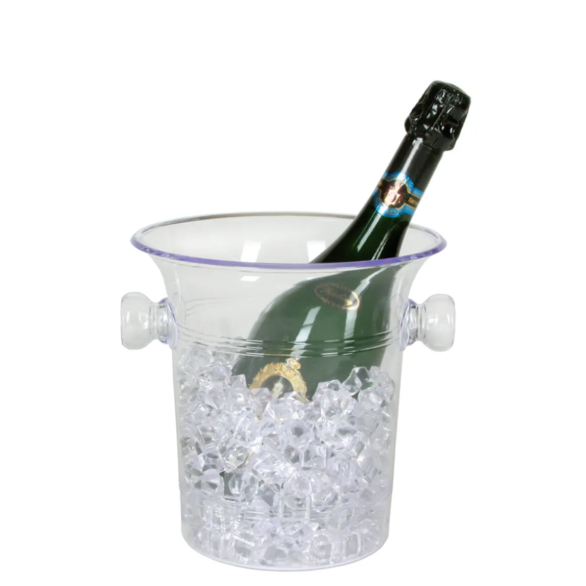 Flaschenkühler aus transparentem Kunststoff in klassischem Design. Der Sekteimer hat ein Fassungsvermögen von 3 Litern. Die elegante Form wird jeder schon einmal gesehen haben.