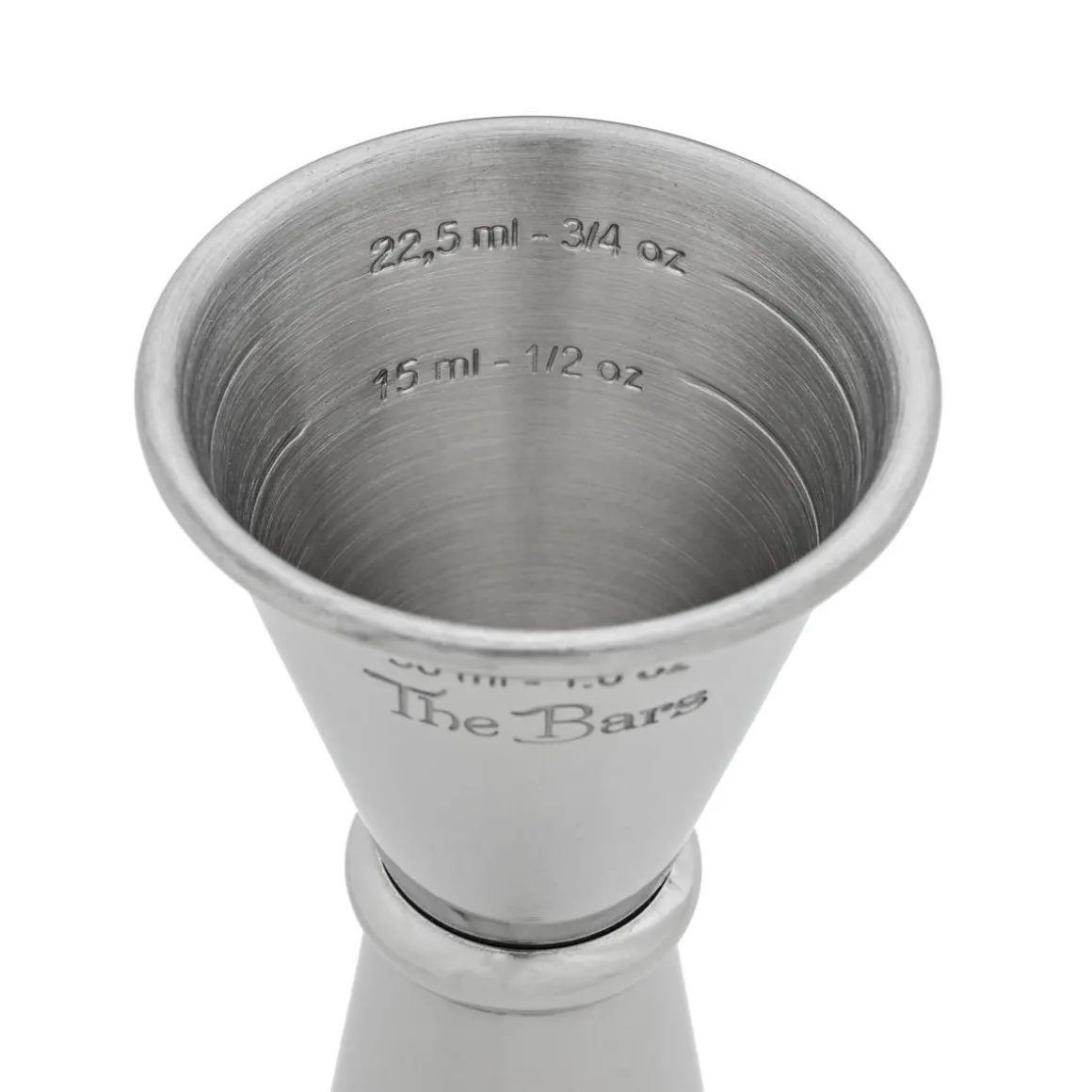 Jigger Japan aus Edelstahl in Silber zum Abmessen von 30 ml (1 oz) und 60 ml (2 oz).