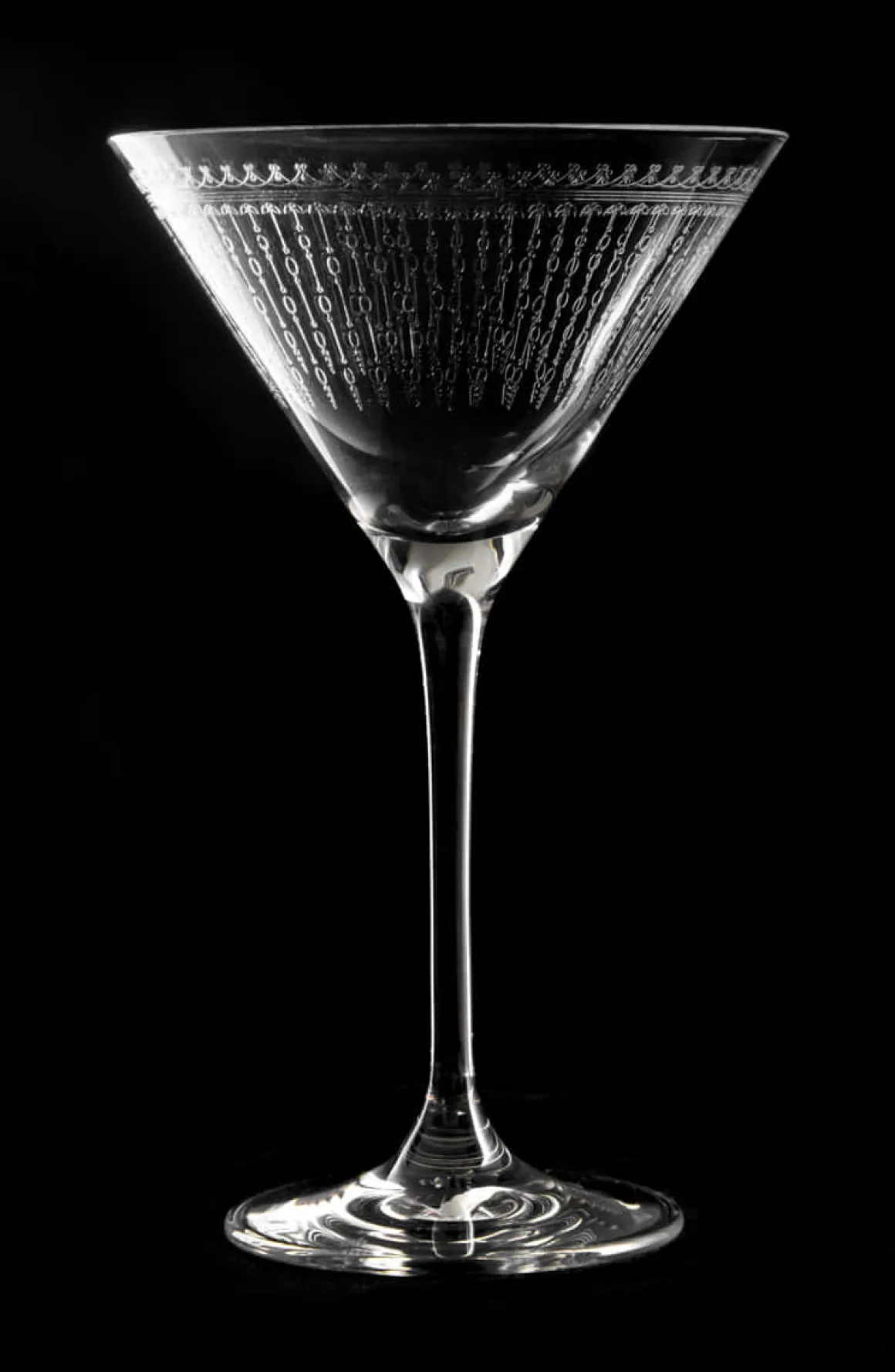 Um die Eleganz des Martiniglases zu unterstreichen besitzt diese Ausführung eine feine eingeätzte Verzierung im Stil der 1920er Jahre.