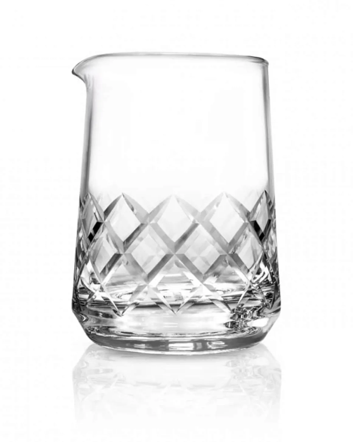 Klassisches Mixingglas mit japanischem Design. Hochwertiges Rührglas für Cocktails aus dickwandigem Glas mit handgefertigtem Rautenmuster.