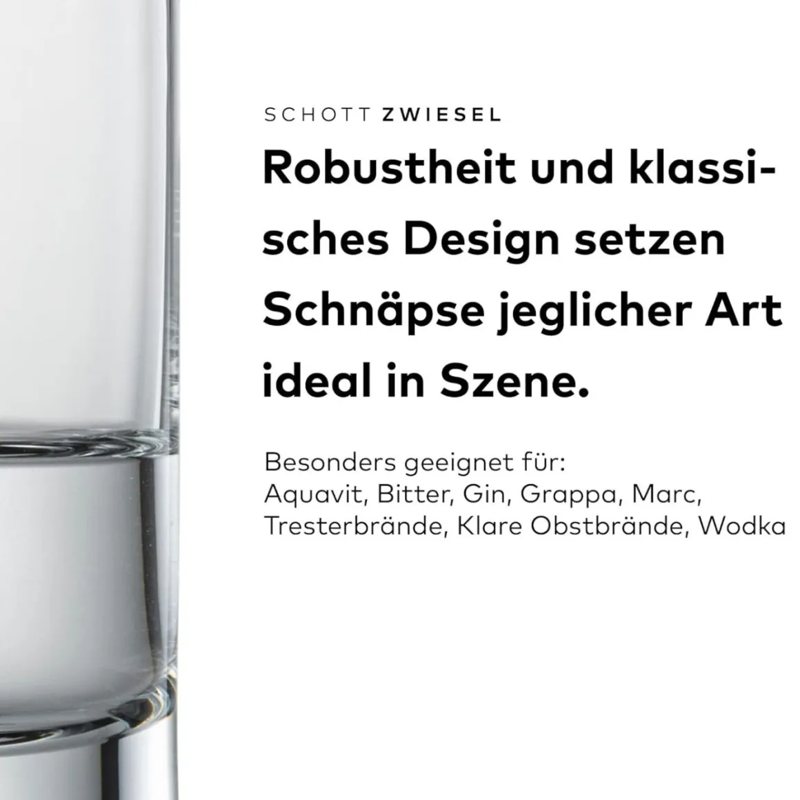 Das Schnapsglas ist aus dem patentierten Tritan Kristallglas von Schott Zwiesel gefertigt. Dieses überzeugt durch sehr hohe Brillanz, Kratzfestigkeit und ist spülmaschinenfest. Hierdurch sind die Gläser langlebig und eignen sich für Gastronomie und Privathaushalte.
