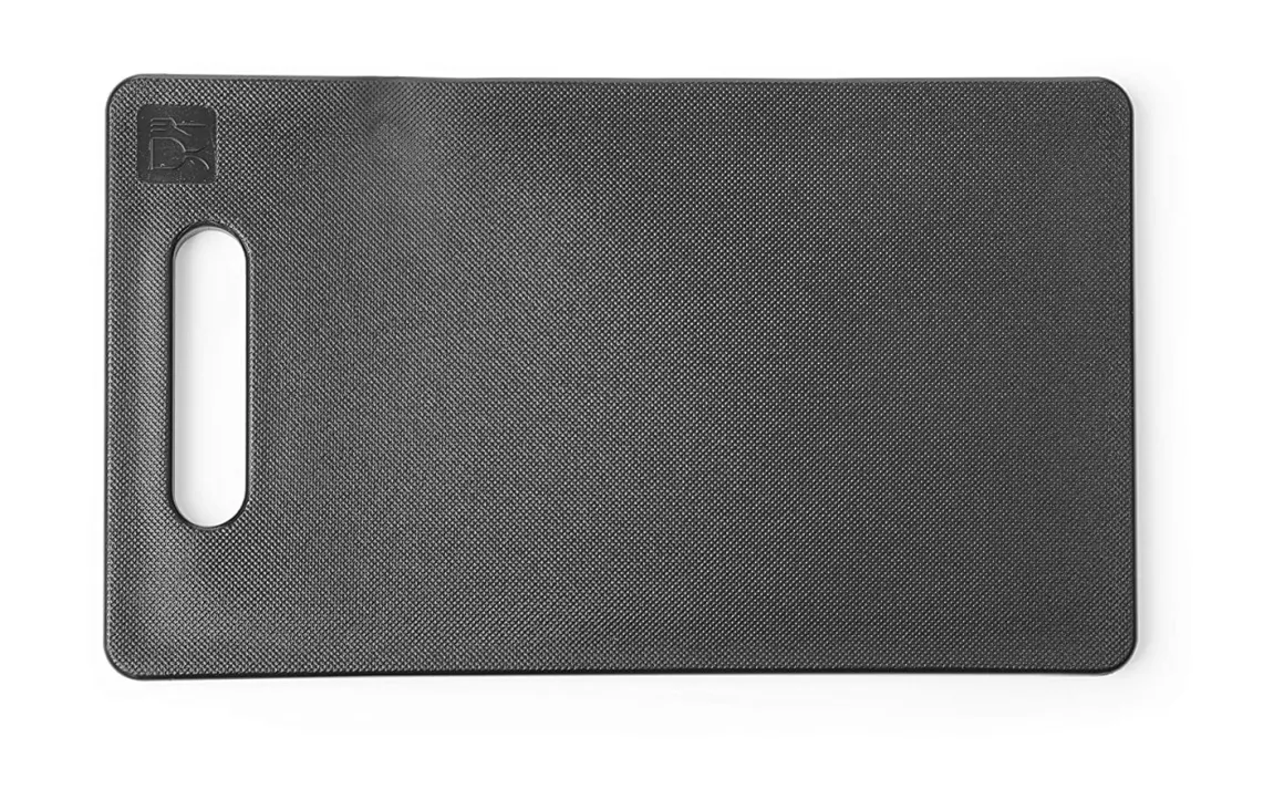 Schneidbrett aus Polyethylen (HDPE) mit geriffelter Oberfläche. Mit Grifföffnung zum Tragen und Aufhängen.