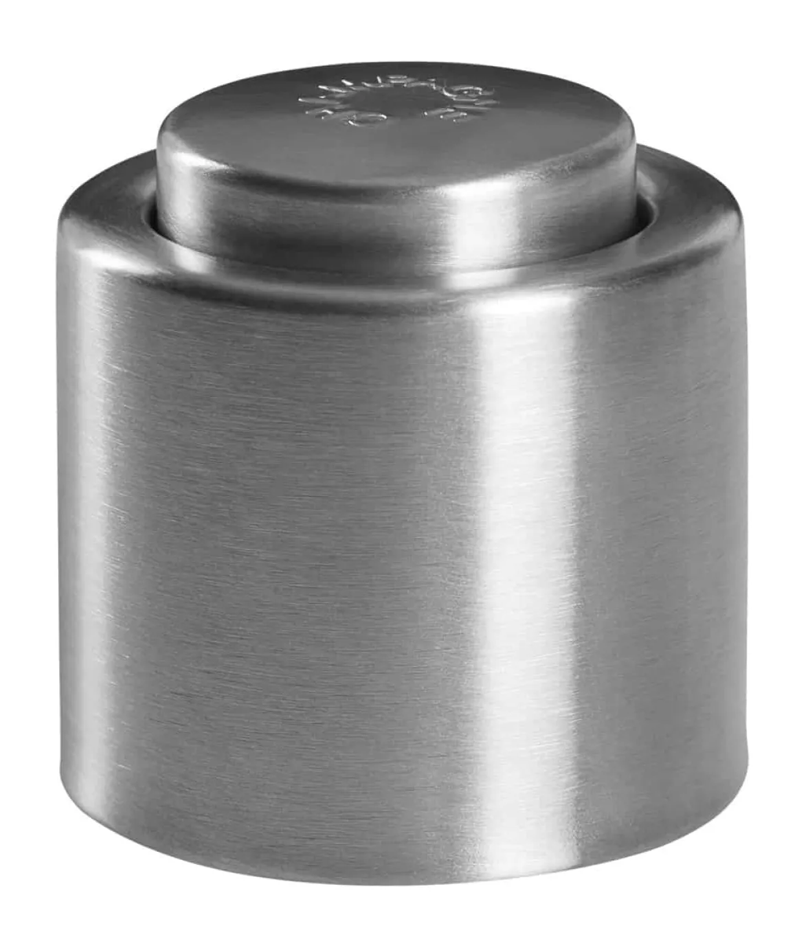 Sekt- und Champagnerverschluss mit innenliegender Silikon-Dichtung. Kohlensäure und Flüssigkeit wird in der Flasche eingeschlossen, so dass der Schaumwein lange frisch und prickelnd bleibt. Zum Öffnen einfach auf den oben liegenden Knopf drücken.