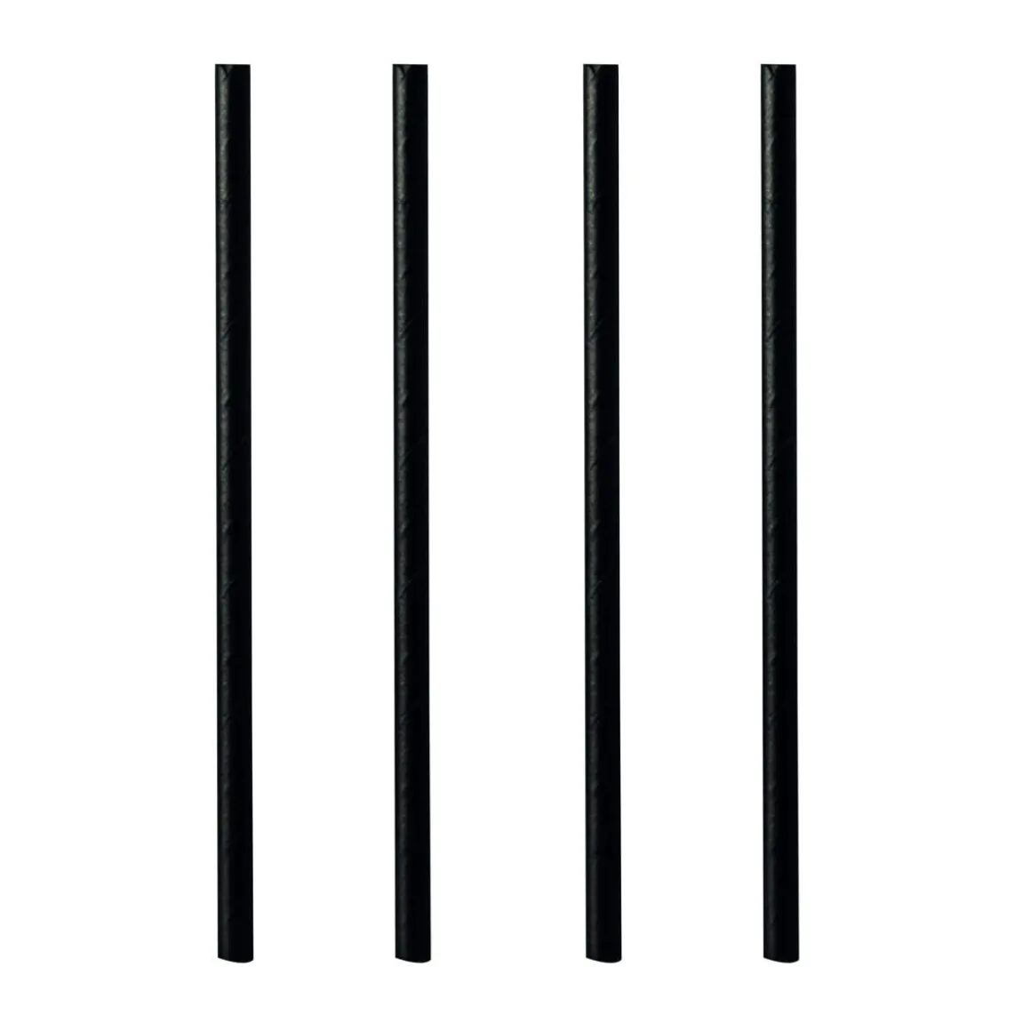 Breite Shake Trinkhalme aus Papier in Schwarz mit einer Länge von 25 cm und einem Durchmesser von 8 mm.