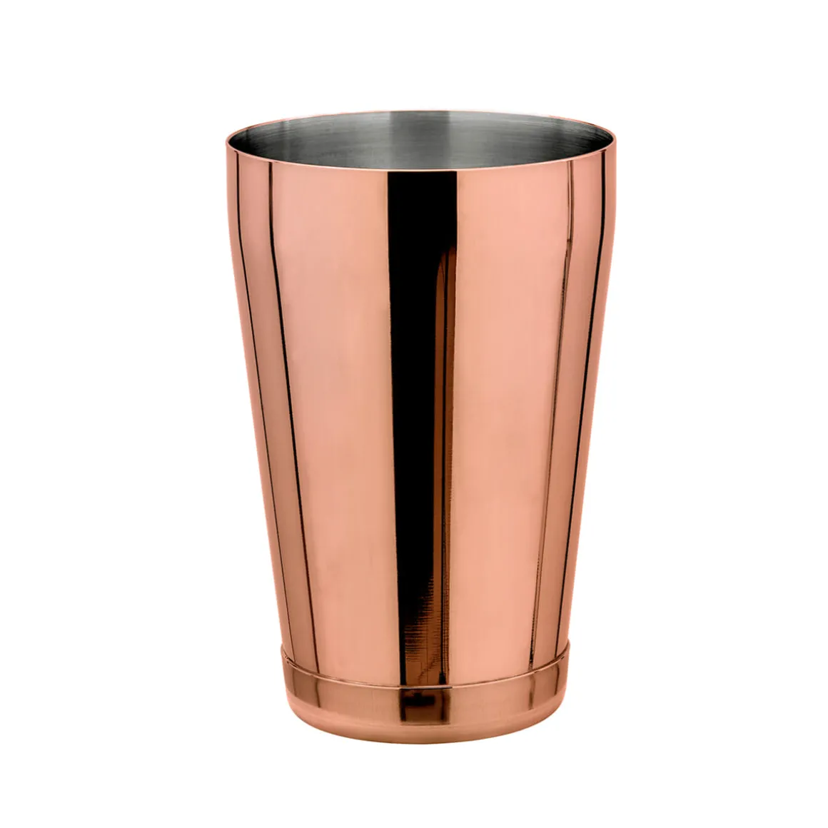 Kleiner kupferfarbene Cocktailshaker Becher aus Edelstahl mit einem Fassungsvermögen von 530 ml / 18 oz. Der Speedshaker besitzt eine doppelte Bodenplatte um gegen Verformen zu schützen. Durch das zusätzliche Gewicht erhält der Speedshaker auch einen sichereren Stand.