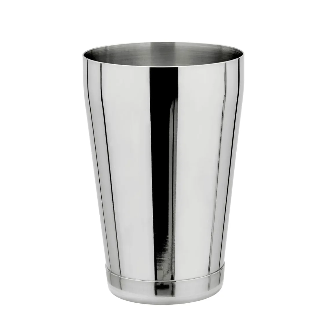 Kleiner silberner Cocktailshaker Becher aus Edelstahl mit einem Fassungsvermögen von 530 ml / 18 oz. Der Speedshaker besitzt eine doppelte Bodenplatte um gegen Verformen zu schützen. Durch das zusätzliche Gewicht erhält der Speedshaker auch einen sichereren Stand.