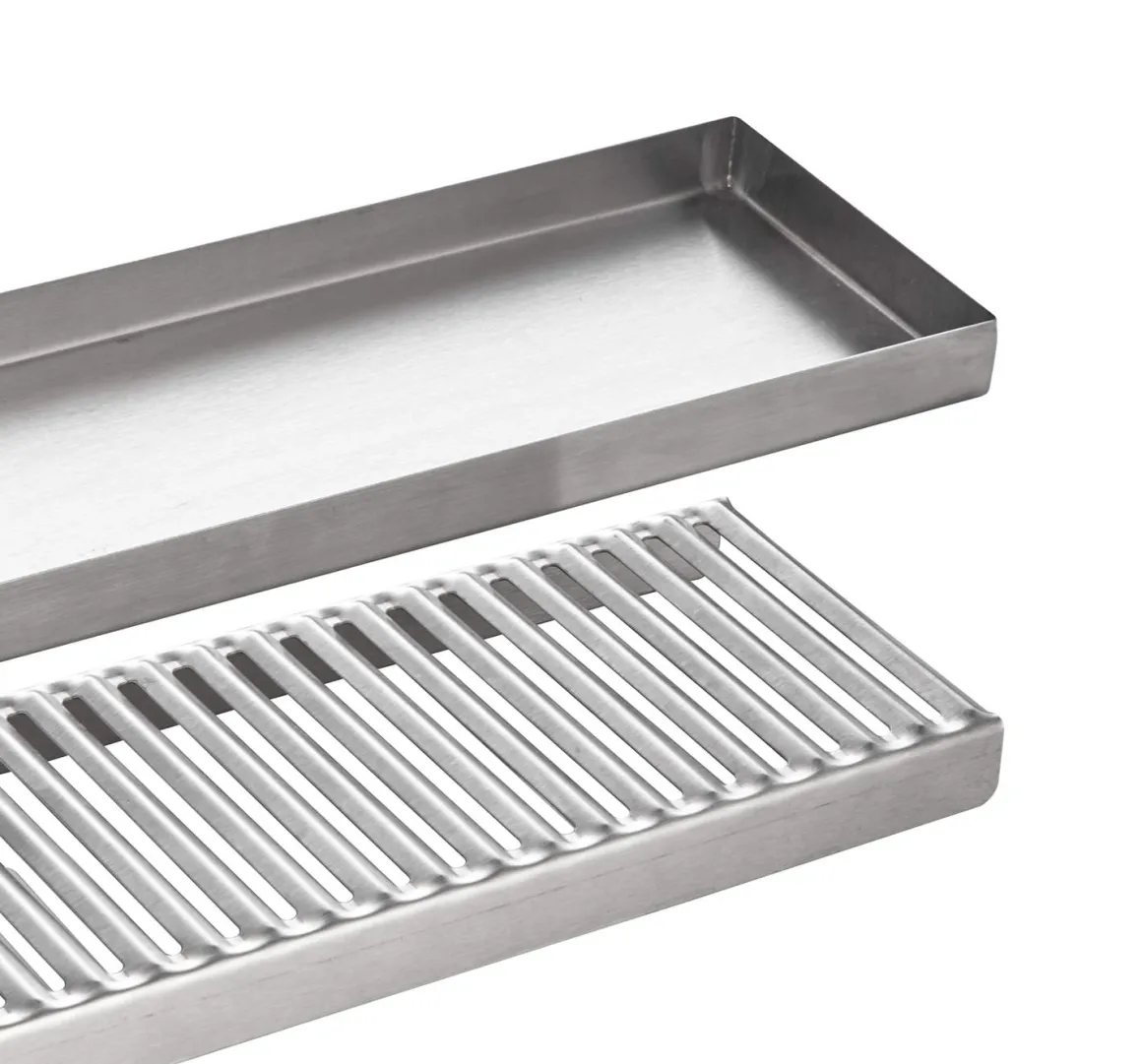 Dank des herausnehmbaren Abtropfgitters stehen Gläser erhöht und Flüssigkeiten laufen sauber in die darunterliegende Auffangschale ab. Da es aus robustem Edelstahl gefertigt ist, ist das Abtropfblech langlebig, hygienisch und besonders pflegeleicht. Mit seinen Maßen von 48,5 × 10,5 cm passt es perfekt auf schmale Theken, neben Zapfanlagen oder in Servicestationen.
