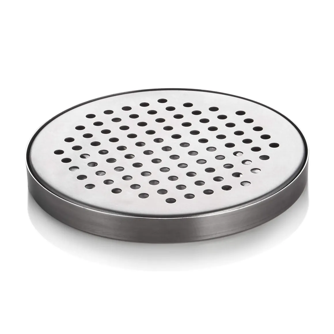 Die gelochte Abtropffläche sorgt dafür, dass Flüssigkeiten sauber in die darunterliegende Auffangschale ablaufen, während die Gläser leicht erhöht stehen. Das Abtropfblech ist aus robustem Edelstahl gefertigt, langlebig, hygienisch und einfach zu reinigen. Mit einem Durchmesser von 14 cm lässt es sich flexibel platzieren, auch an Orten mit begrenztem Platz.