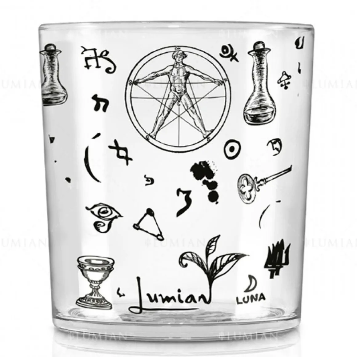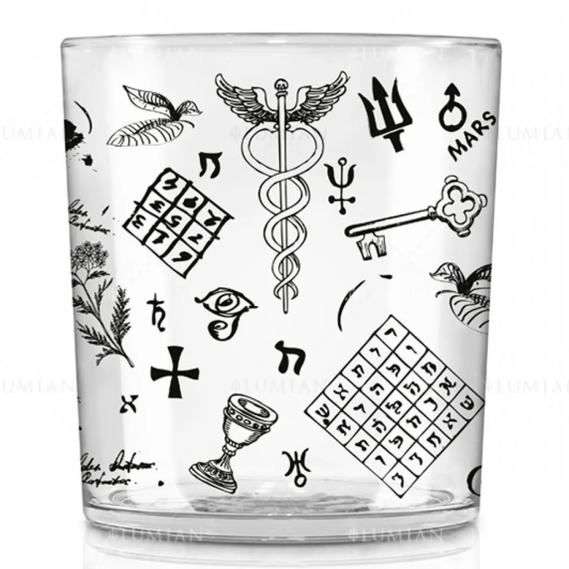 Passend zum Tumbler mit Alchemy Verzierung ist ein Longdrinkglas, ein Weinglas und ein Ballonglas erhältlich. Außerdem sind Cocktailshaker und Jigger mit Alchemy Verzierung erhältlich.