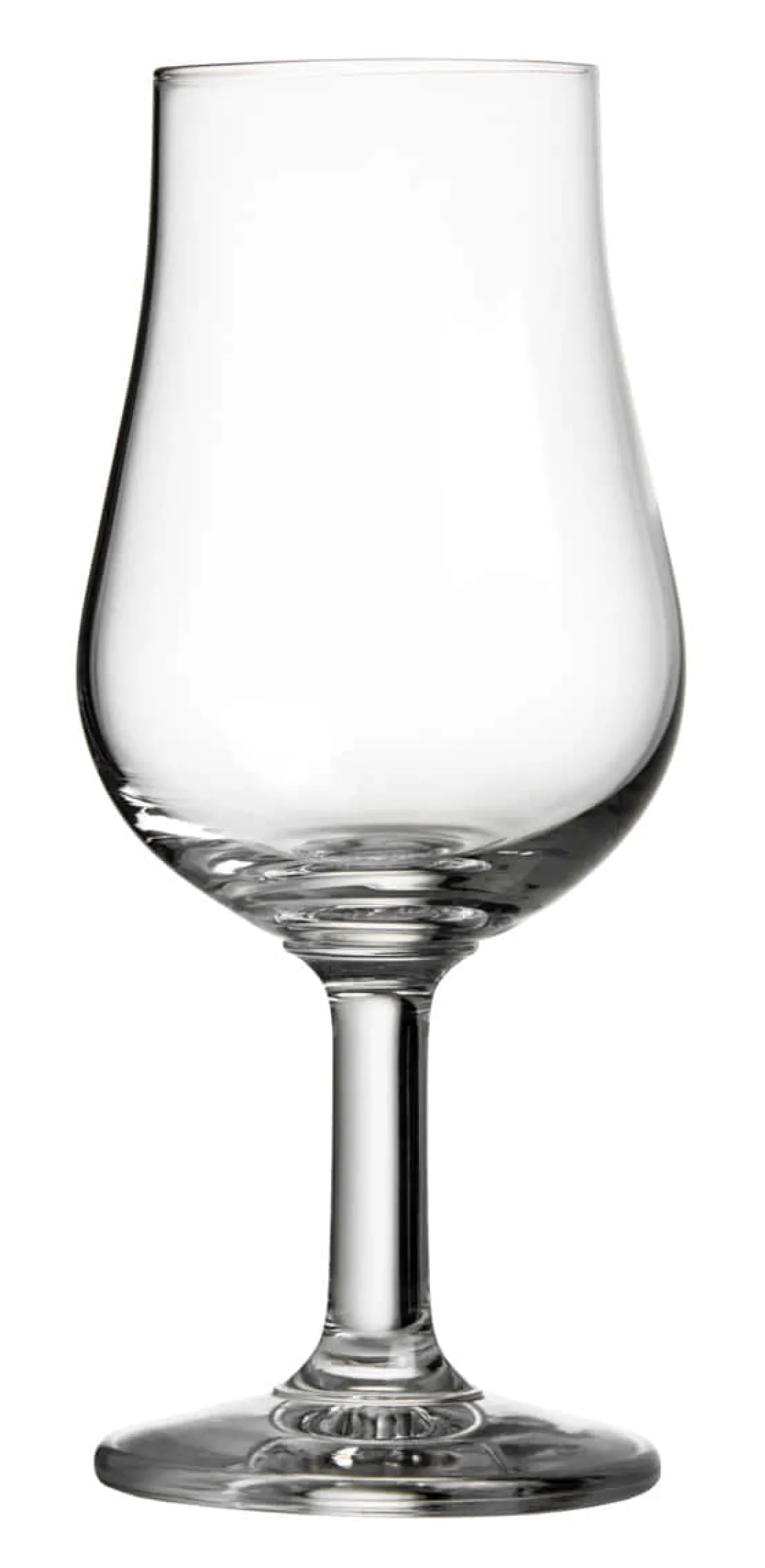 Tastingglas für Whiskys in Tulpenform mit mittellangem Stiel. In der abgerundeten Schale lässt sich der Whisky gut schwenken und die nach oben verengende Form bündelt die Aromen und leitet sie in die Nase für ein optimales Tasting des Whiskys.
